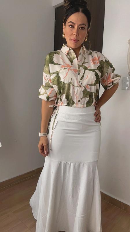 Set Blusa Floral Y Falda Larga