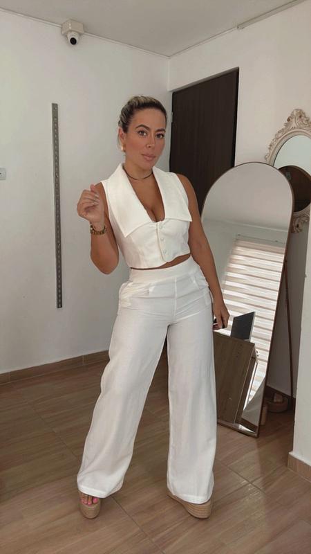 Set blanco con chaleco elegante y tela increíblemente suave, ideal para cualquier ocasión. Su diseño moderno y sofisticado resalta tu estilo.