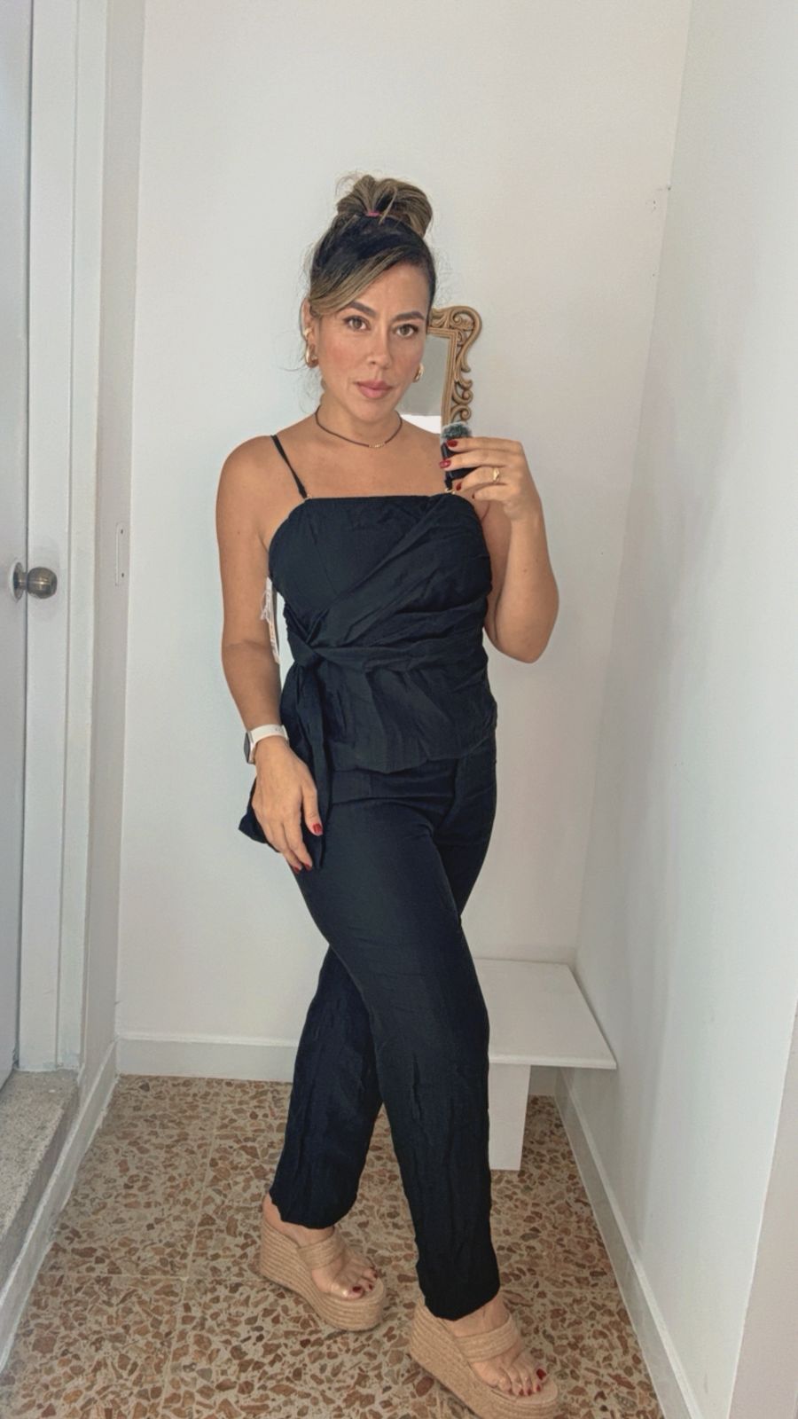 Set Negro Glam – Chaleco Y Pantalón Palazzo Elegante